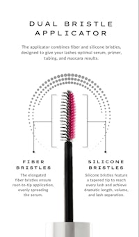 the benefits of a growth serum, primer, tubing, with the maximum volume, length, and lift of a fiber mascara.